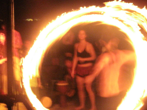 As the evening progresses I notice that the photos I am taking are increasingly out of focus. I wonder if it’s me; have I had too many jugs of rum and coke? Or it is the people I am photographing; perhaps they have had too many? Or maybe I am just capturing the vibe, because it all seems to get rather blurry and surreal. The storm passes and we all stumble outside to clear our heads, bask in the star light, eat barbecued fish and watch the fire dance show. Then it’s the rhythm of the drums and the gentle lapping of waves on the shore as the dancers twirl and swirl in a whirl of fire.