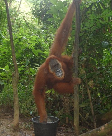 Now, orangutans face the gravest threat of all and that is an insatiable global demand for palm oil, a popular vegetable oil used in many food products, as well as cosmetics and increasingly in bio fuel. Ninety per cent of the world’s palm-oil exports come from the plantations of Malaysia and Indonesia. The low land forests of Borneo and Sumatra – the last remaining habitats for orangutans, are the areas favored for conversion. Over 80% of the land that has been deforested in Sumatra over the last 20 years can be attributable to the planting of palm oil and all unprotected low lying forest is at risk.