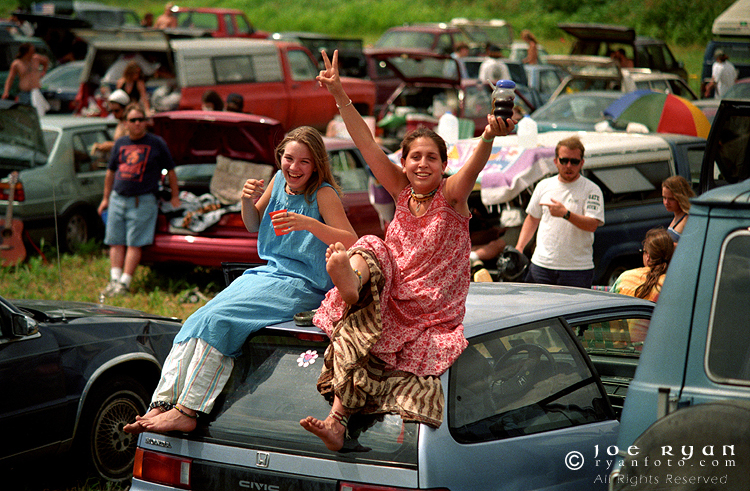 There were thousands of us on the road with the Dead, but we weren’t just following a band, we were following a lifestyle. I had stumbled upon a sub-culture, whose roots were firmly entrenched in freedom of expression and that was something I could relate to. Although I could never fully silence the cynic in me, at times I came close. I have never experienced such kindness and dare I say it, love! Dead tour was about people coming together; it really was one great big happy family, complete with its own lingo. Everything was ‘kind’; ‘kind bud’ to get you high; ‘kind veggie pasta’ if you were hungry and it seemed that I had become a ‘kind rainbow sister’ which I wasn’t really too sure about. Kind brothers and sisters kept asking me if I could ‘kick down a kind falafel’ which I eventually figured out meant they wanted one for free. If something was good, it was‘styling’ or ‘grooving’ and no-one said hello, it was ‘hey now’ or ‘hey dude’ or ‘hey bro’. Scores of people would hang around outside the venue calling out for a miracle (a free ticket).